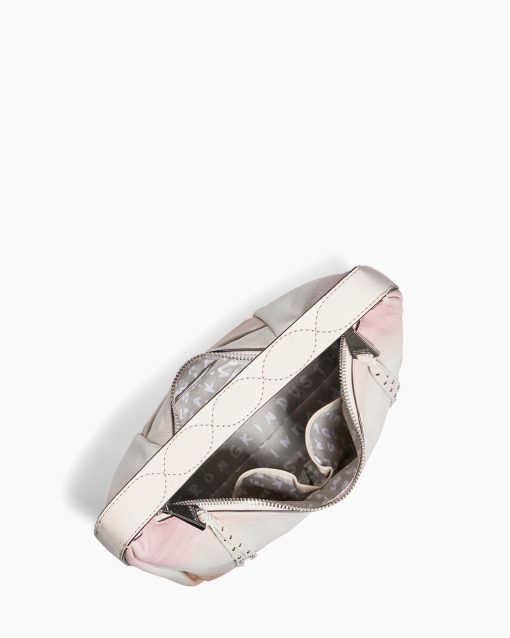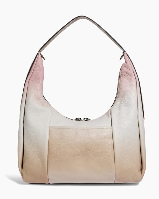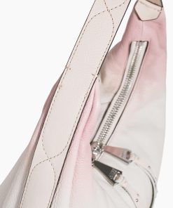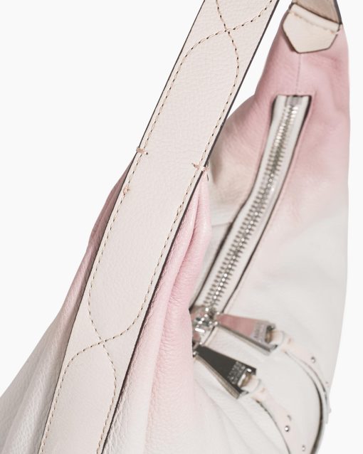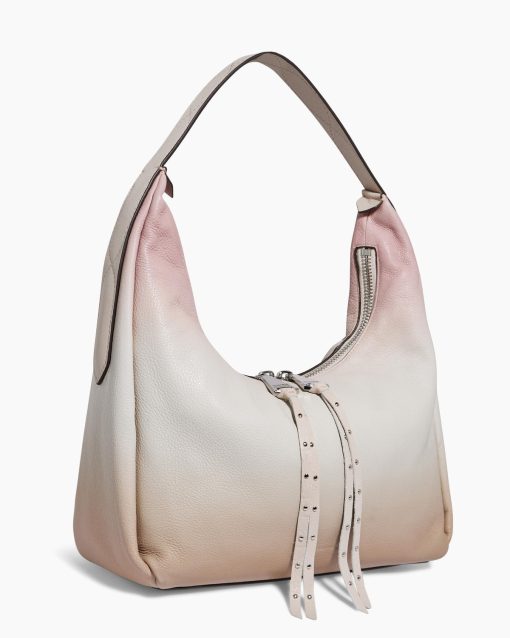 The Hamilton Novelty Hobo boasts an oversized zipper adorned with studded tassels for a touch of flair. The handle itself is uniquely crafted with intricate stitching details and features a distinctive buckle.