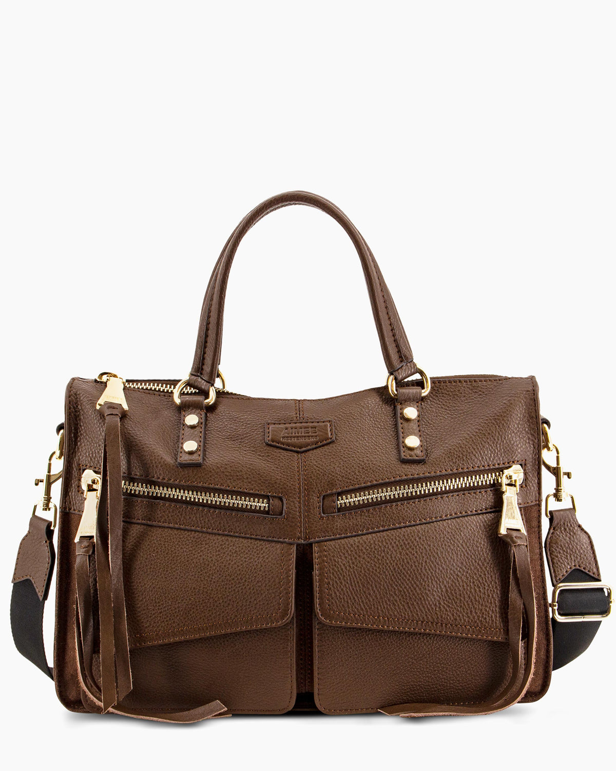 Ready for any adventure, the Road Trip Satchel blends edgy structure with soft, perforated leather for a look that’s equal parts bold and effortless. It’s the ultimate arm candy, complete with perfectly placed pockets and a detachable shoulder strap for on-the-go ease. Whether you’re hitting the road or heading to brunch, carry it by the handle or sling it over your shoulder—either way, you’re traveling in style.