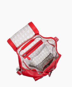 - Exterior: 2 front pockets with magnetic snaps and faux buckles, 1 back slip pocket with magnetic snap