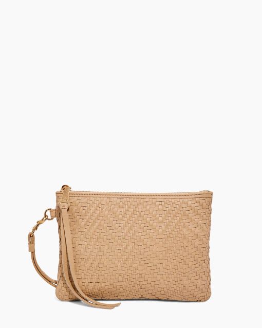 The Woven Wristlet Pouch is the ultimate grab-and-go piece, with a removable wristlet strap to convert to a true clutch.